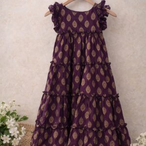Select options This product has multiple variants. The options may be chosen on the product pagePurple Pure Cotton Ankle-Length Frock for Girls | Gold Print Layered Dress with Lining