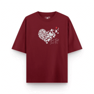 0 out of 5₹999Original price was: ₹999.₹699Current price is: ₹699.Show love and freedom with this Women’s Oversized Maroon T-Shirt featuring a heart graphic and “Heart Full, Soul Free” quote. Premium cotton streetwear fit.