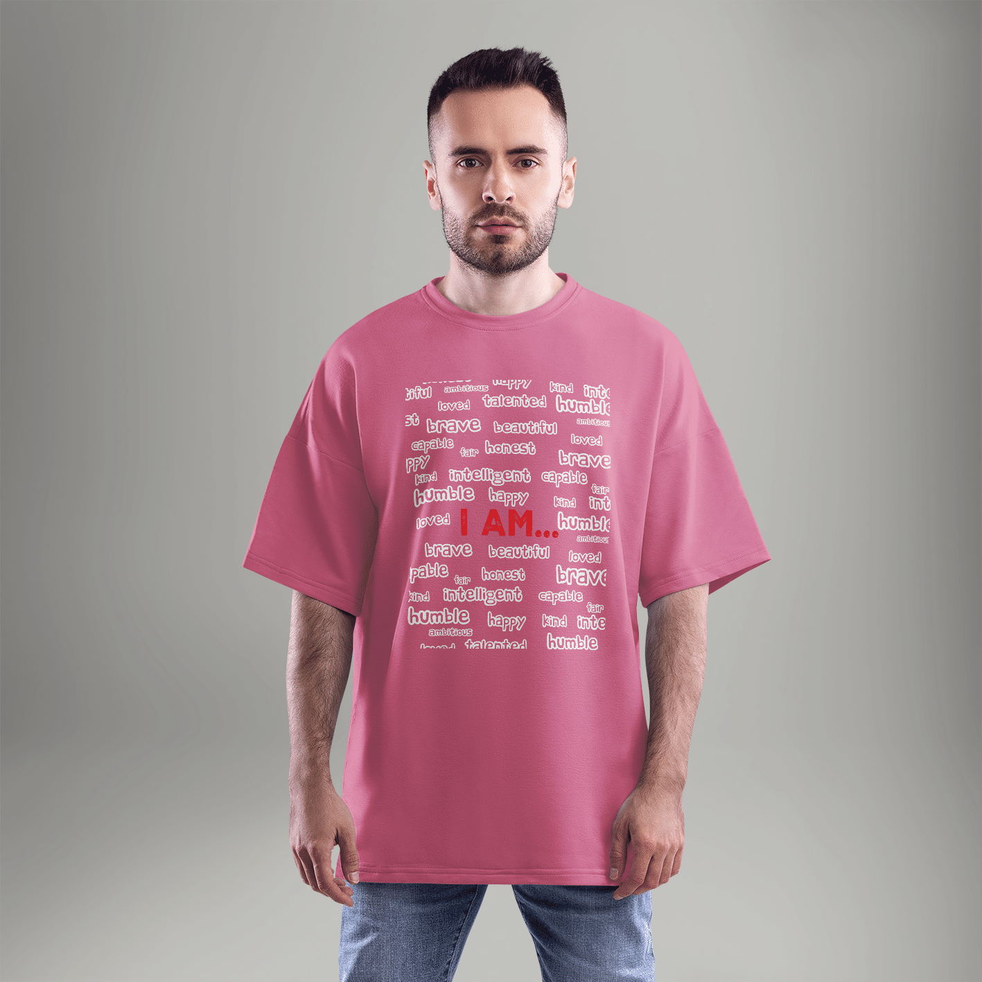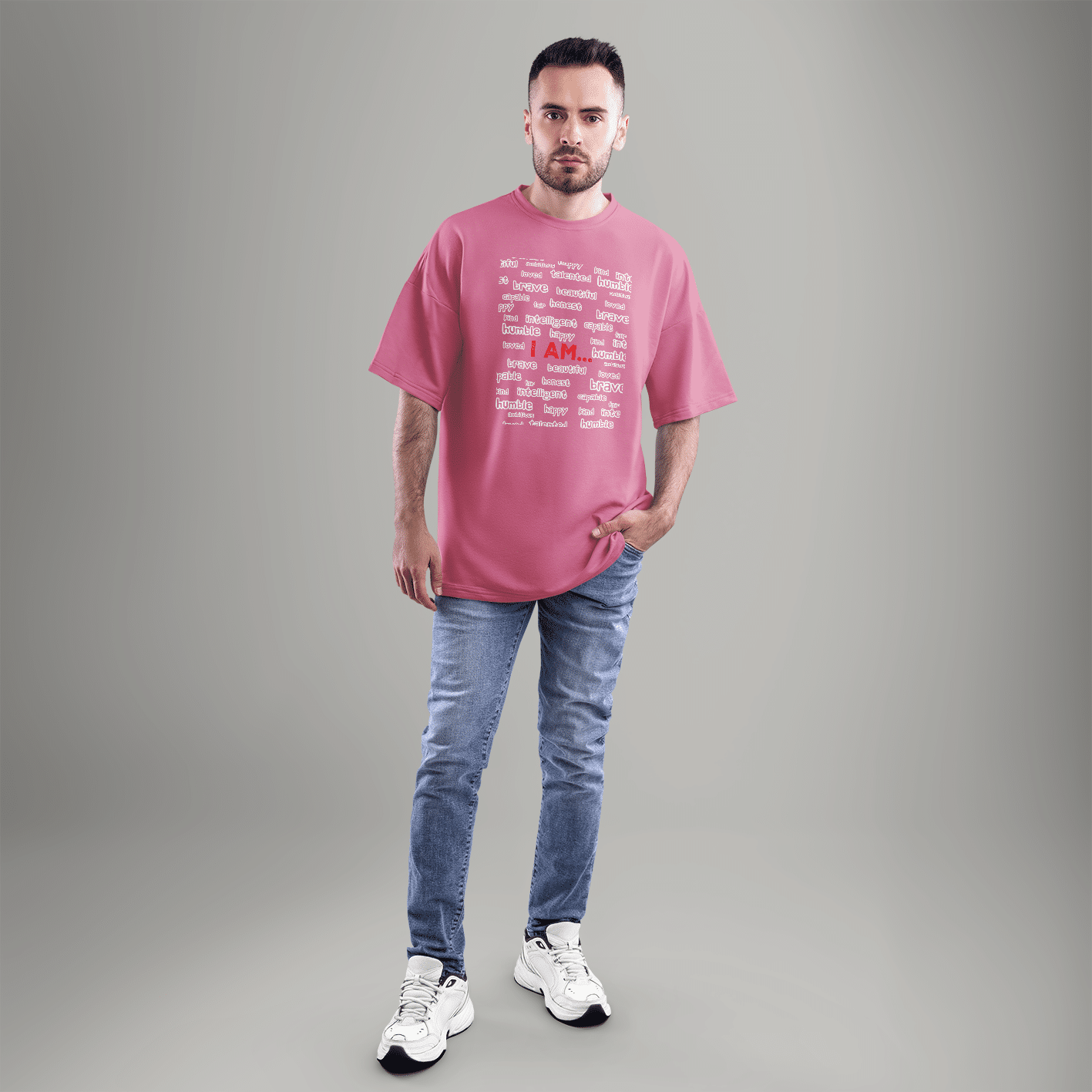 Whether you’re lounging at home, stepping out for a casual meet-up, or just expressing your inner self, the “I AM…” White Oversized T-Shirt is your go-to choice. It blends premium comfort with a distinctive message, making it a standout piece in your collection.