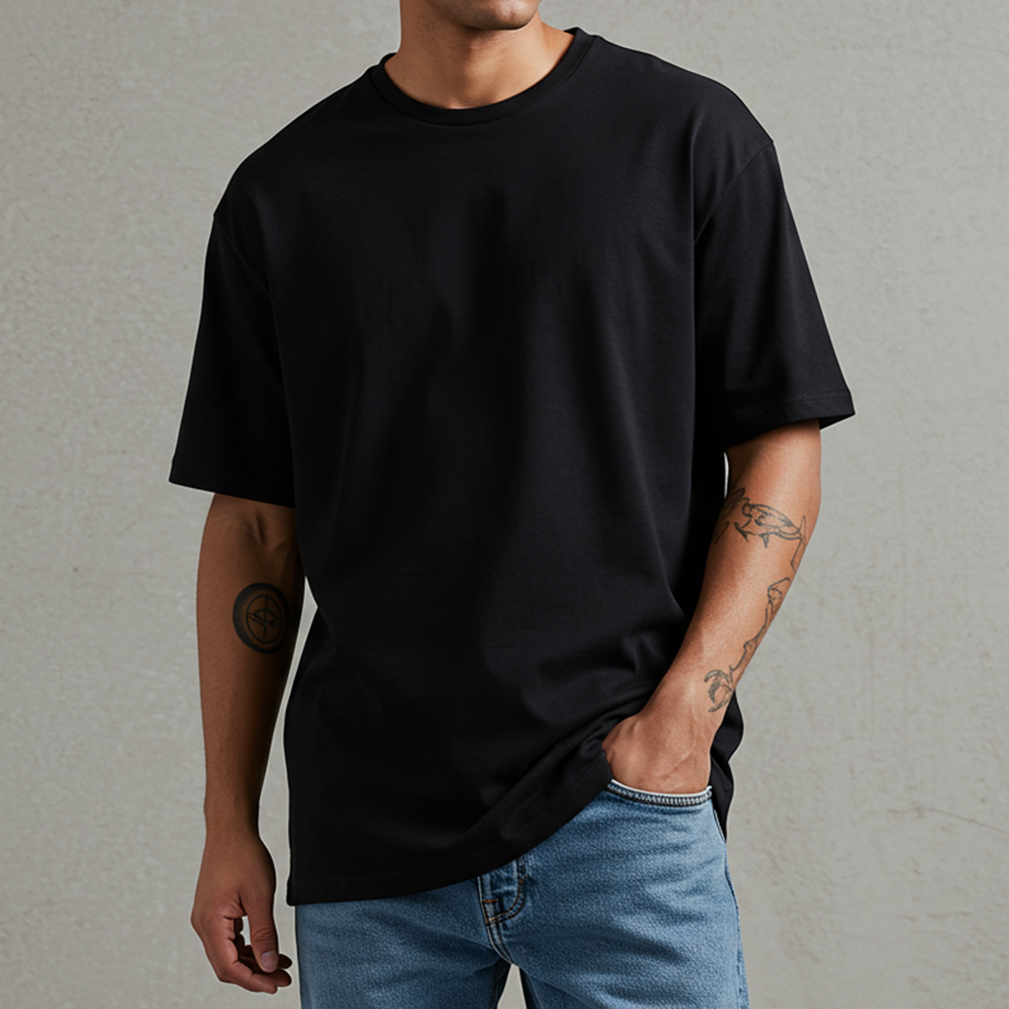 Plain Black 100% Cotton Oversized T-Shirt for Men