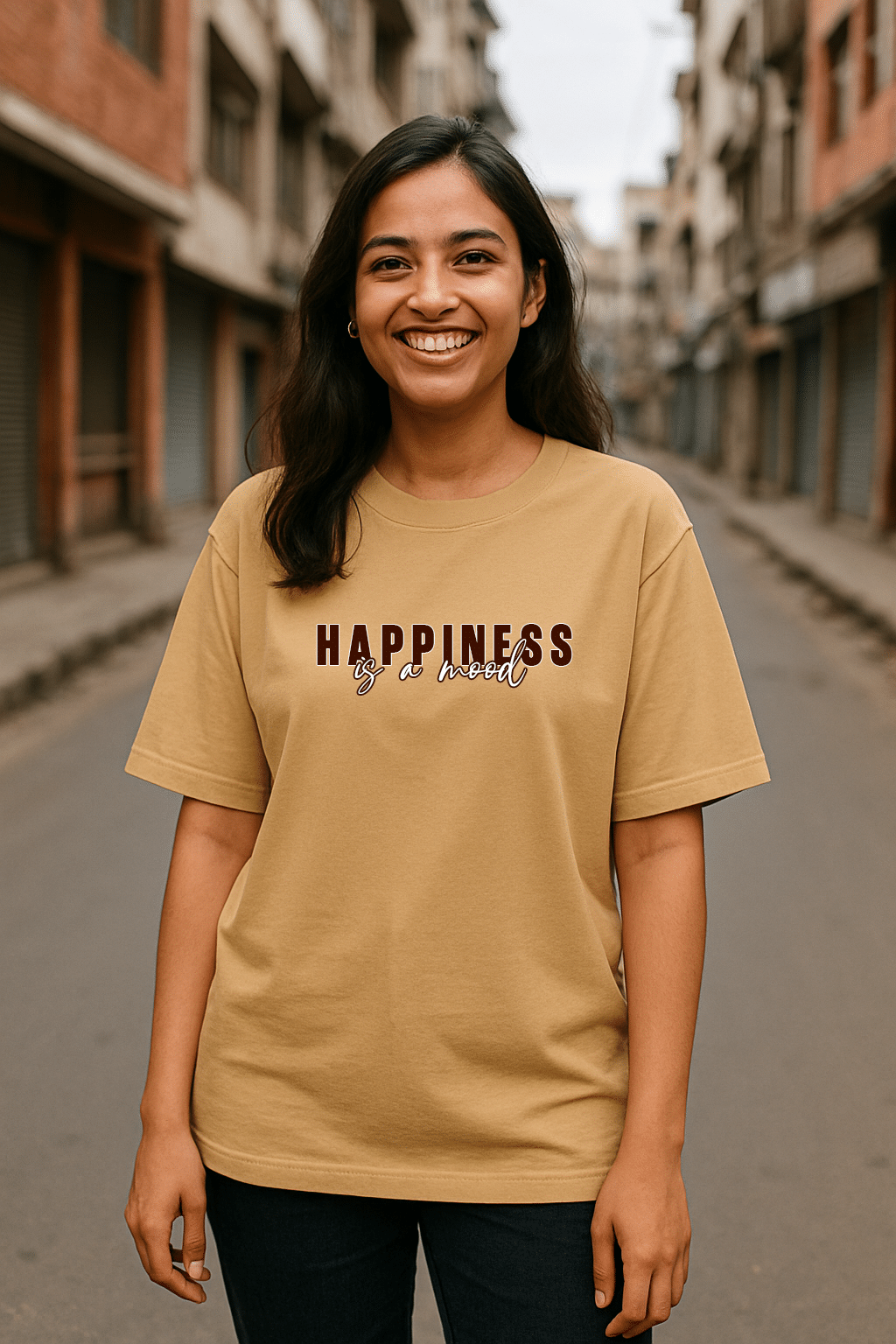 Stay stylish and spread positivity with our Women’s Oversized Beige T-Shirt – Happiness is a Mood. Made with premium cotton and designed for everyday comfort, this oversized tee is the perfect