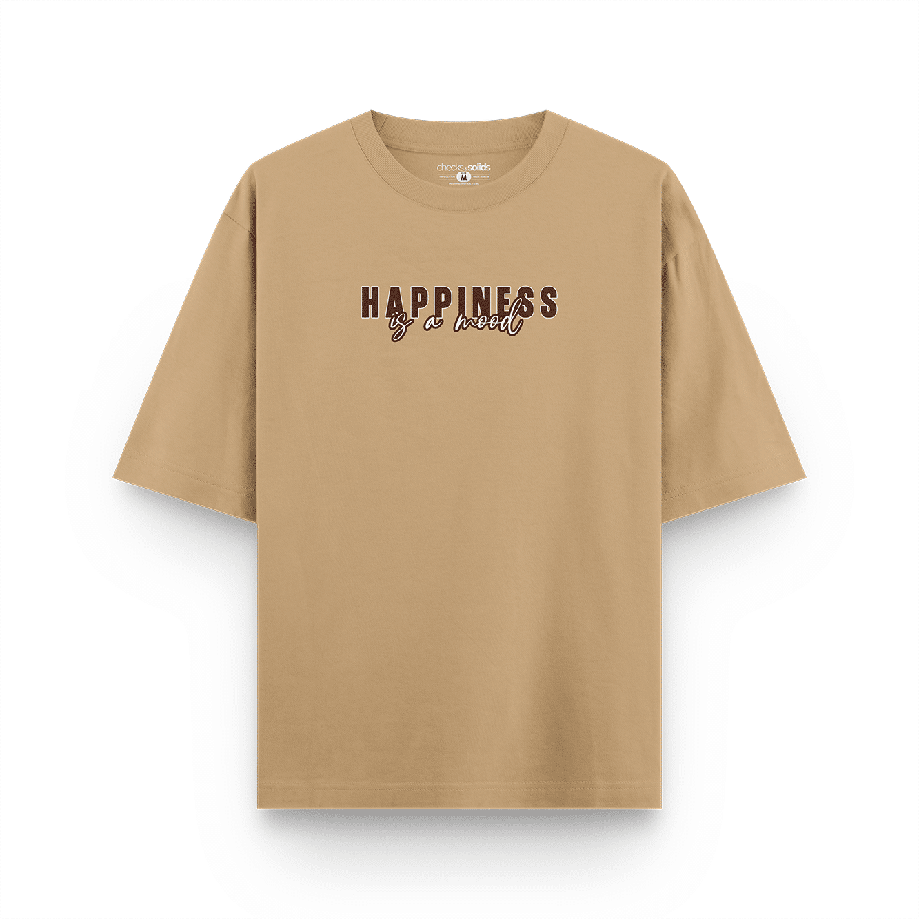 Women’s Oversized Beige T-Shirt – Happiness is a Mood